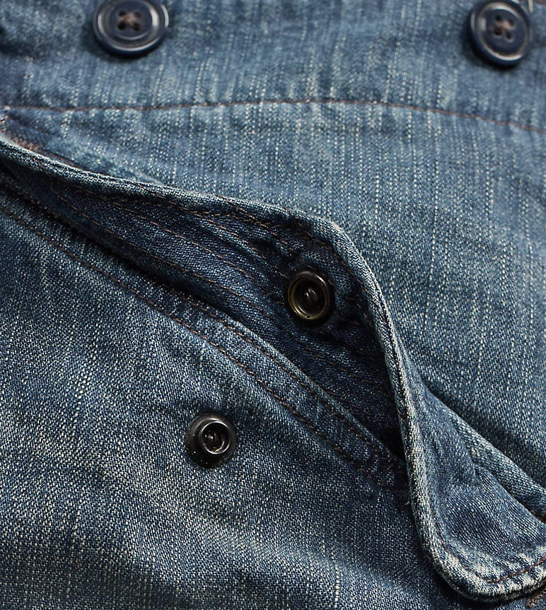 Description: Made from 8.5 oz. Japanese denim that is dyed with true indigo. Vintage surplus–inspired construction with a zip fly and a buttoned closure. Sanforized® to minimize shrinkage.