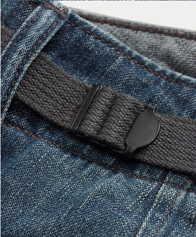 - Belt loops. Side adjusters. Exterior buttons for braces. Zip fly with a buttoned closure.