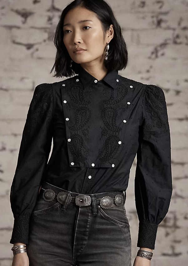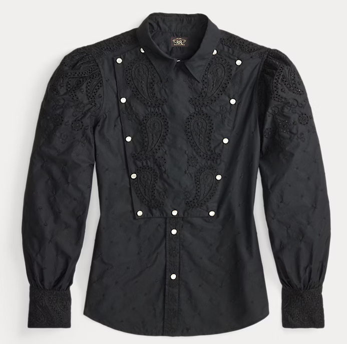 RRL Women's Embroidered Cotton Bib-Front Blouse